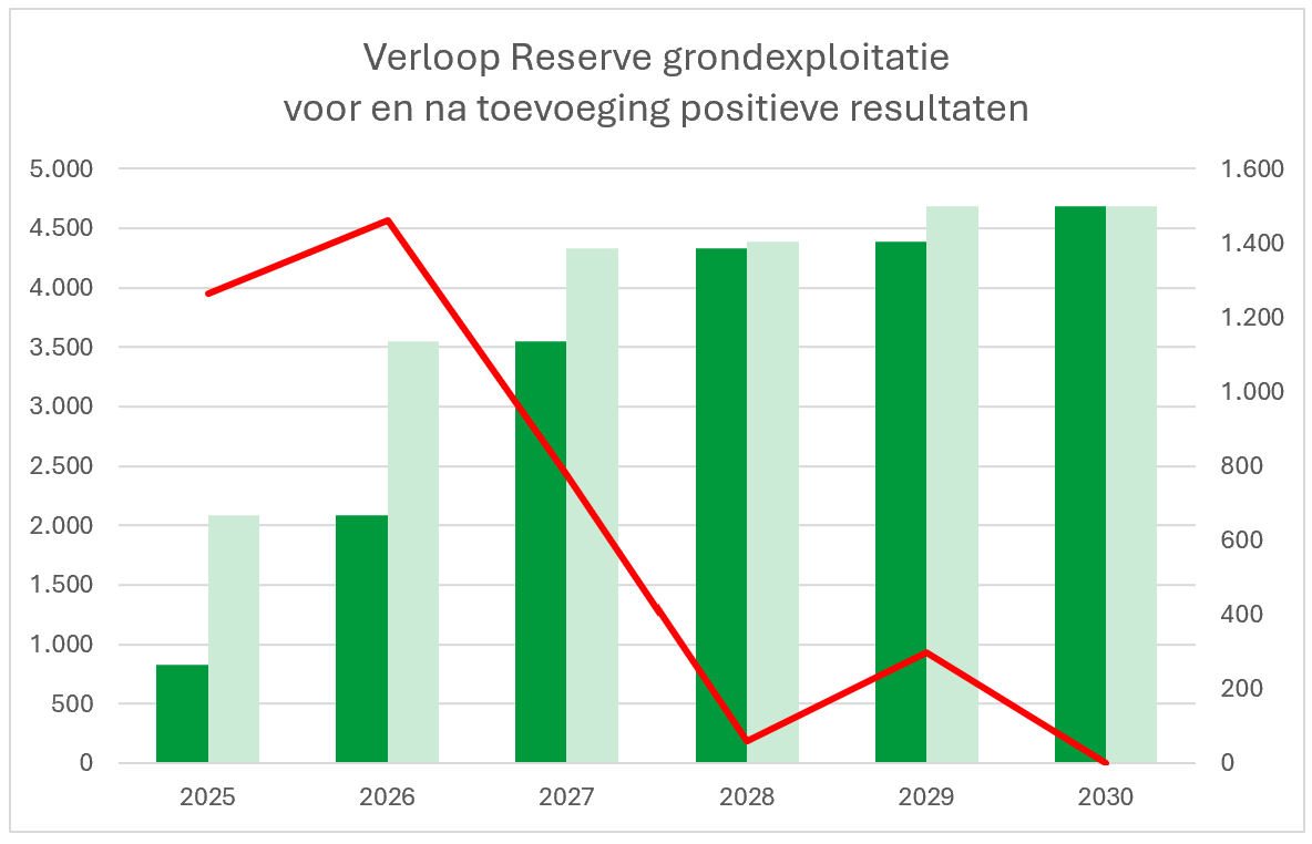 In juni 2021 is besloten om voortaan alle winsten en verliezen uit grondexploitaties af te wikkelen via de reserve grondexploitaties. De risico's van de grondexploitaties worden daarmee gedekt uit deze reserve. Het risico wordt hier wel inzichtelijk gemaakt, maar niet financieel vertaald, omdat de dekking aanwezig is in de reserve Grondexploitaties.